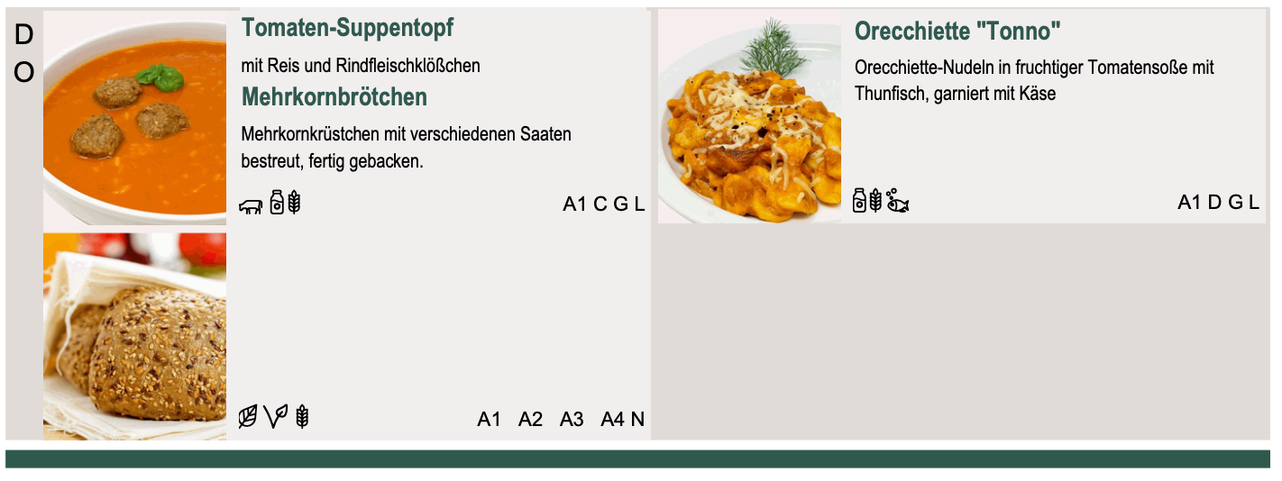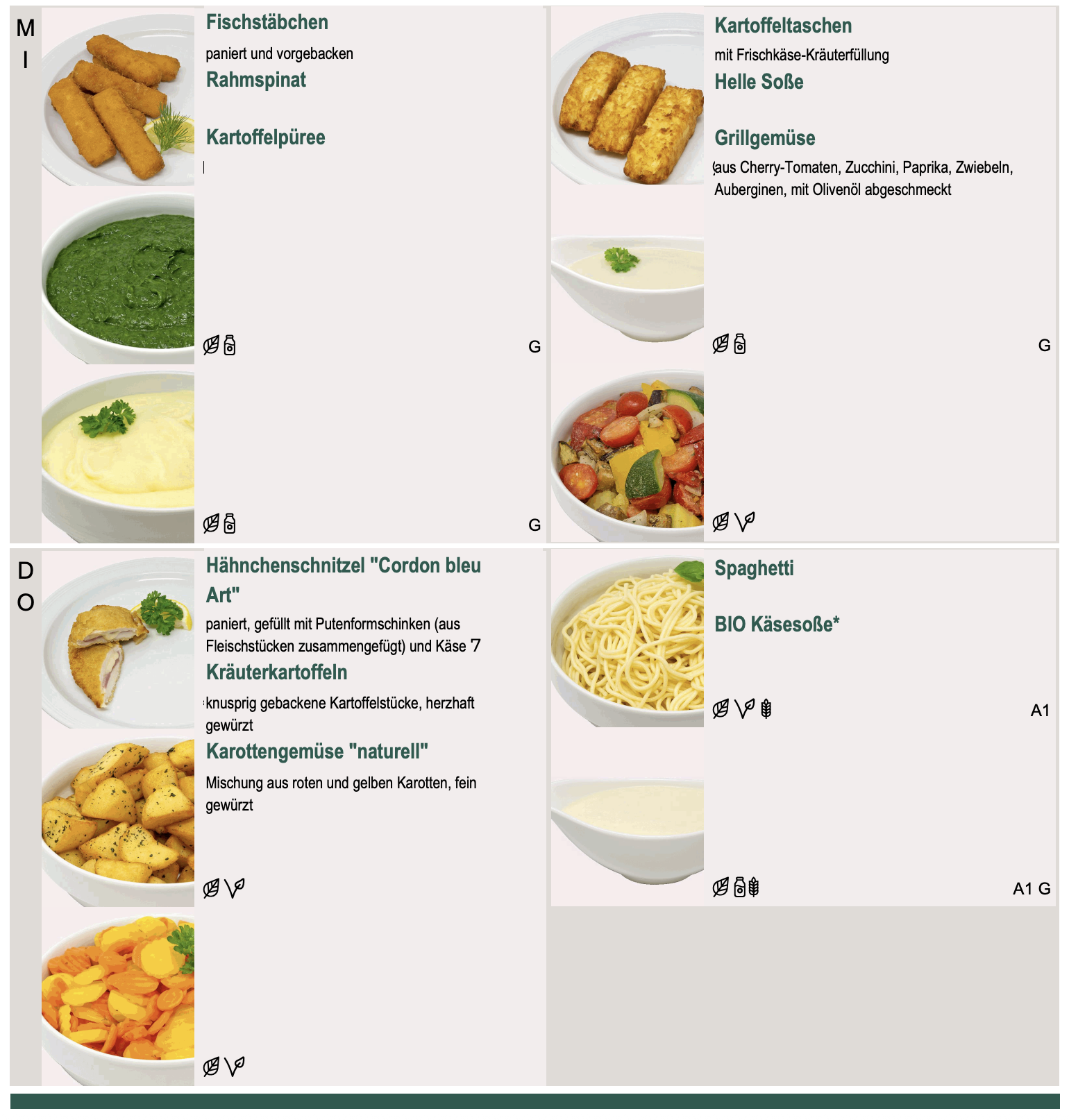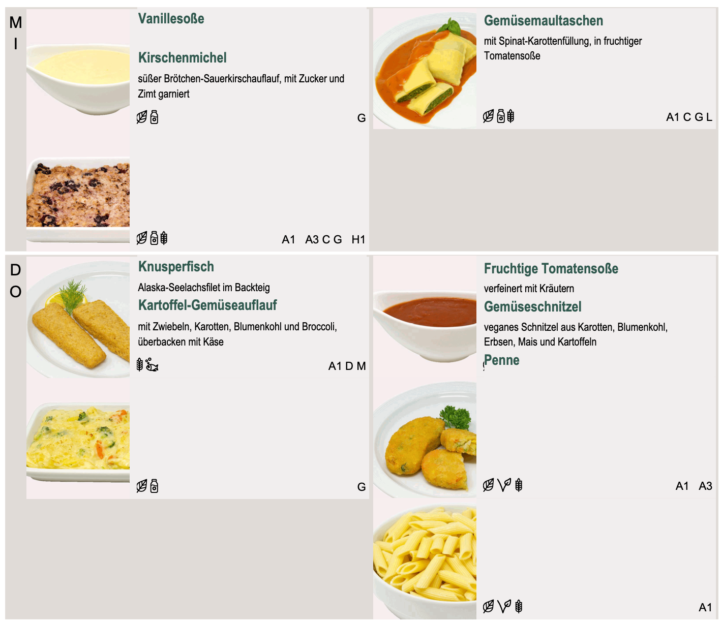 Abbestellungen und Änderungen sind am jeweiligen Tag bis 9.30 Uhr möglich.