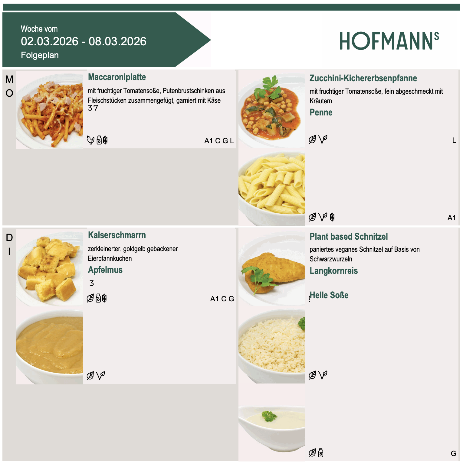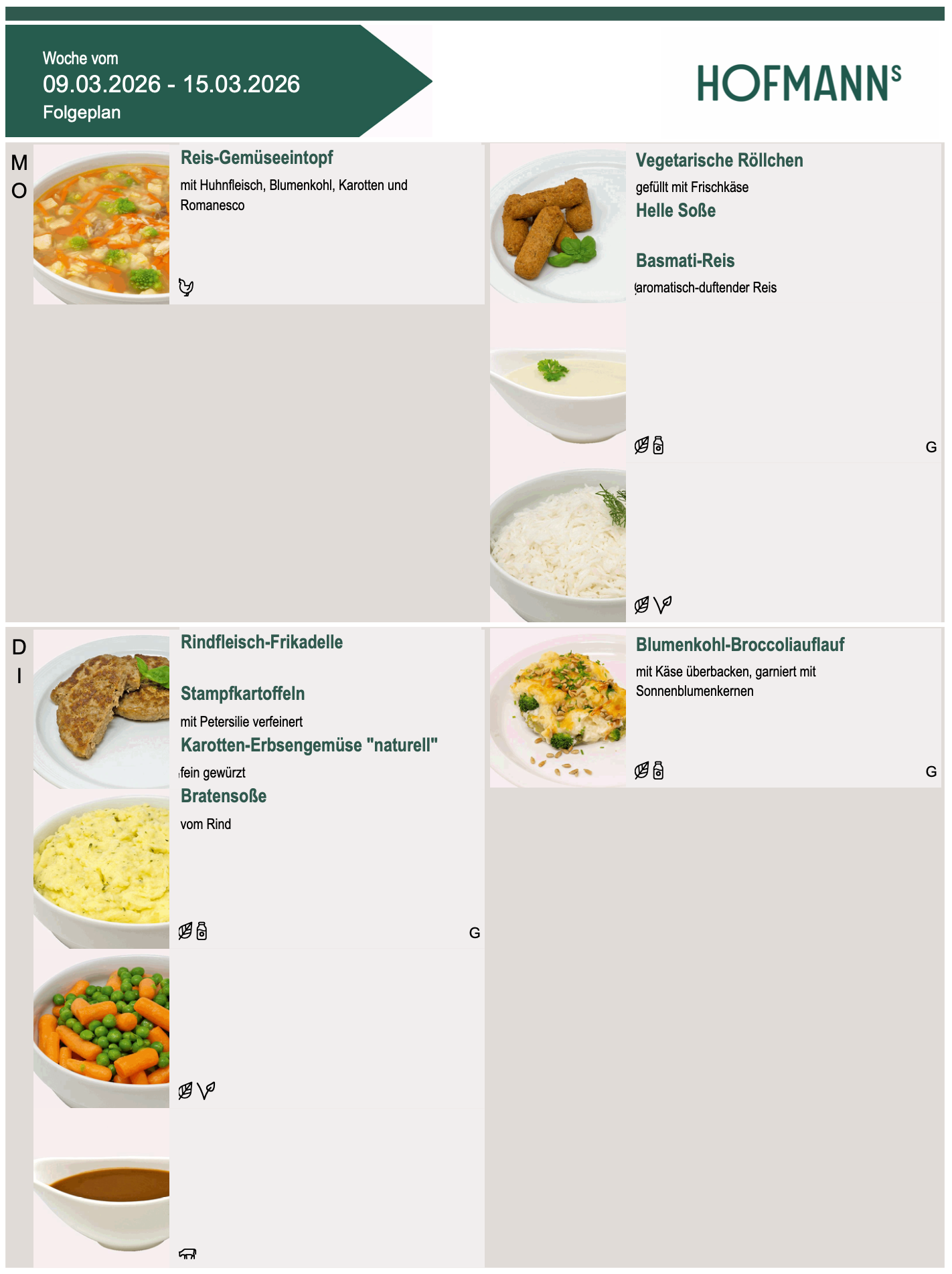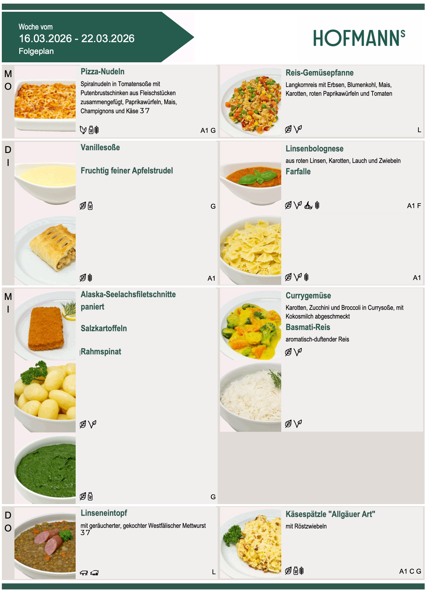 Abbestellungen und Änderungen sind am jeweiligen Tag bis 9.30 Uhr möglich.