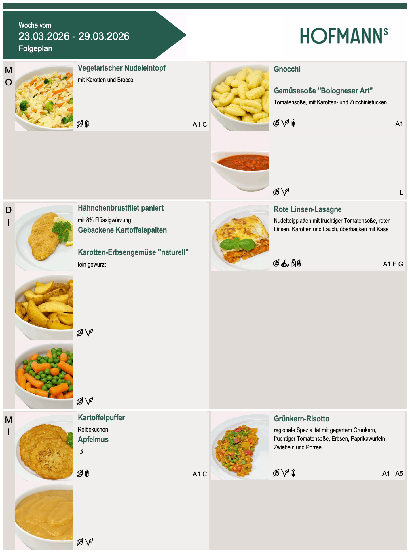 Speiseplan Woche ab 23. März